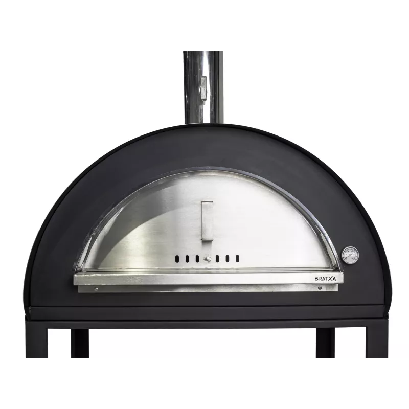 Four à bois design avec une voûte en acier Inox et un plan de cuisson en matériau réfractaire pour cuisiner pizza, pain, rôti, gratin, viande, poisson, légume, dessert…