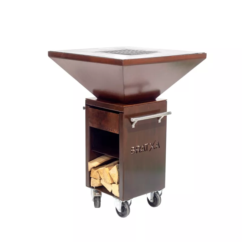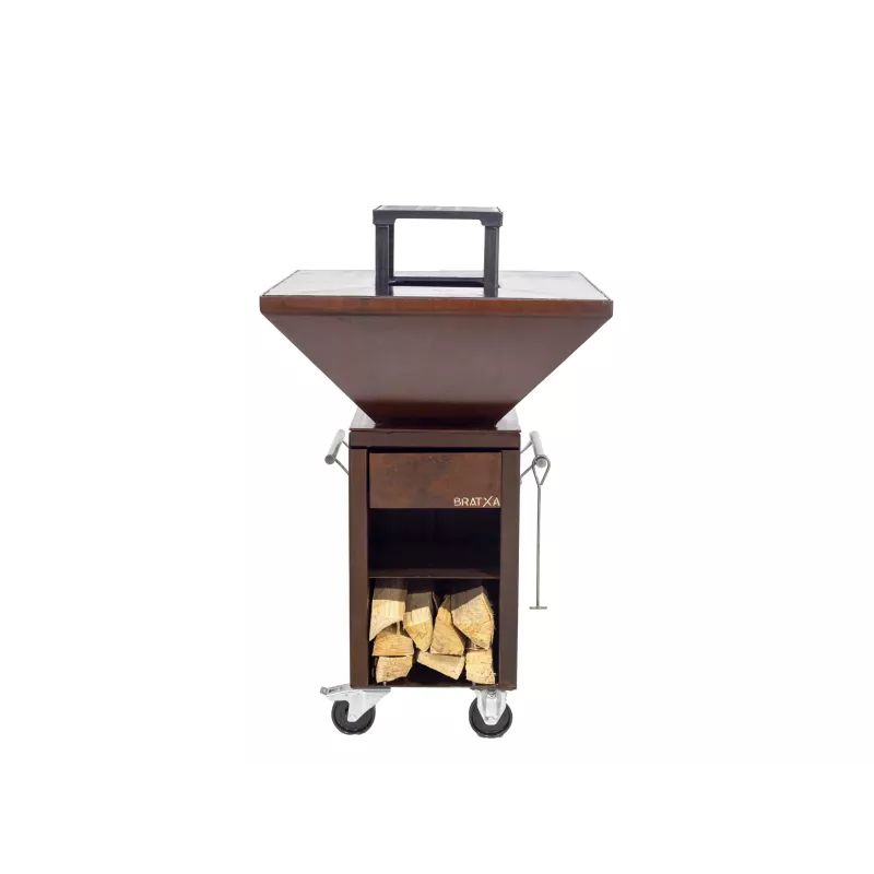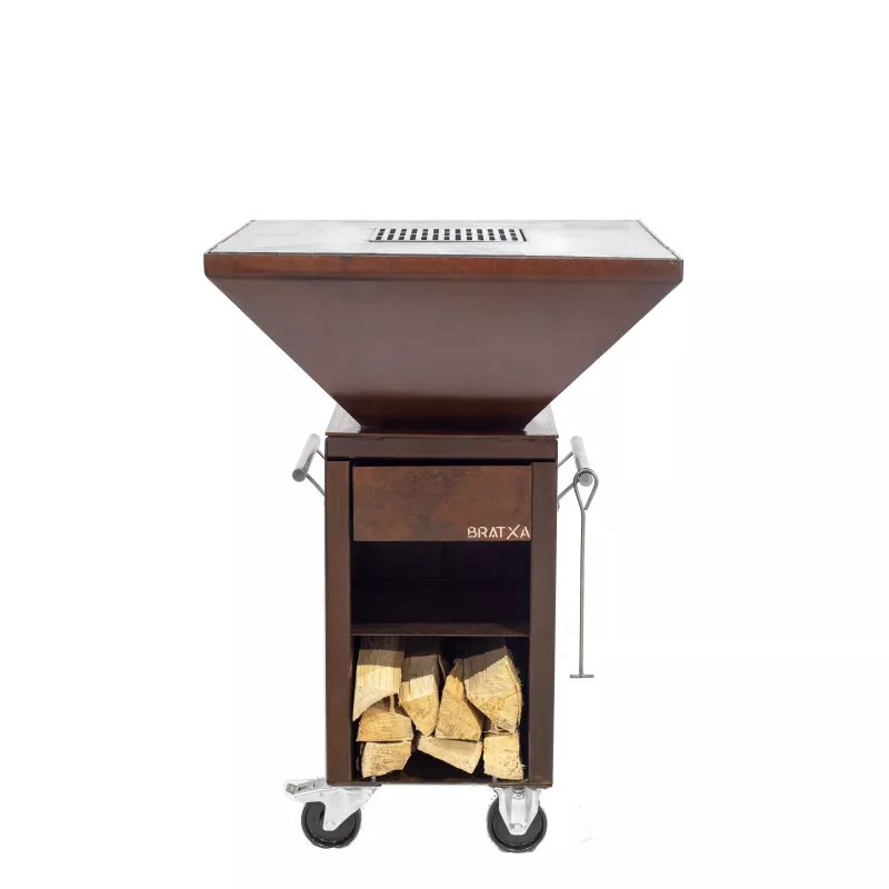 Tiroir récupérateur de cendres. Compartiment de stockage pour le bois, Couleur Corten très actuelle.